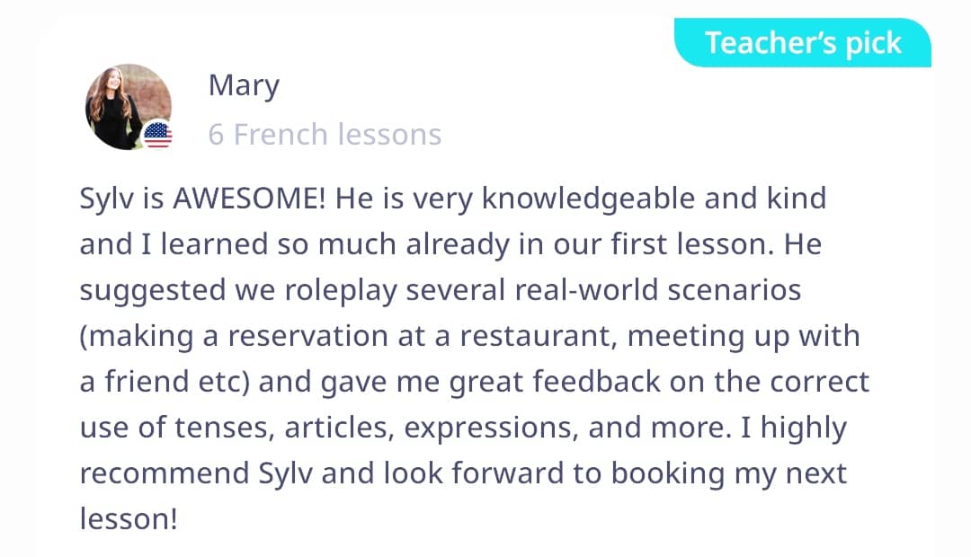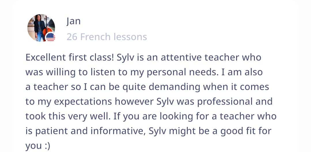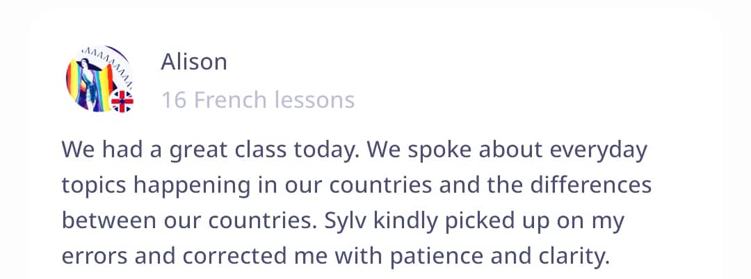 βοΈwe adapt our lessons to your expectations, and to your level. Our lessons are varied, interesting, clear, and interactive. Conversations, situations, descripβtions of images, videos, and other activities π Have fun while learning (games, role plays, stories, etc.)